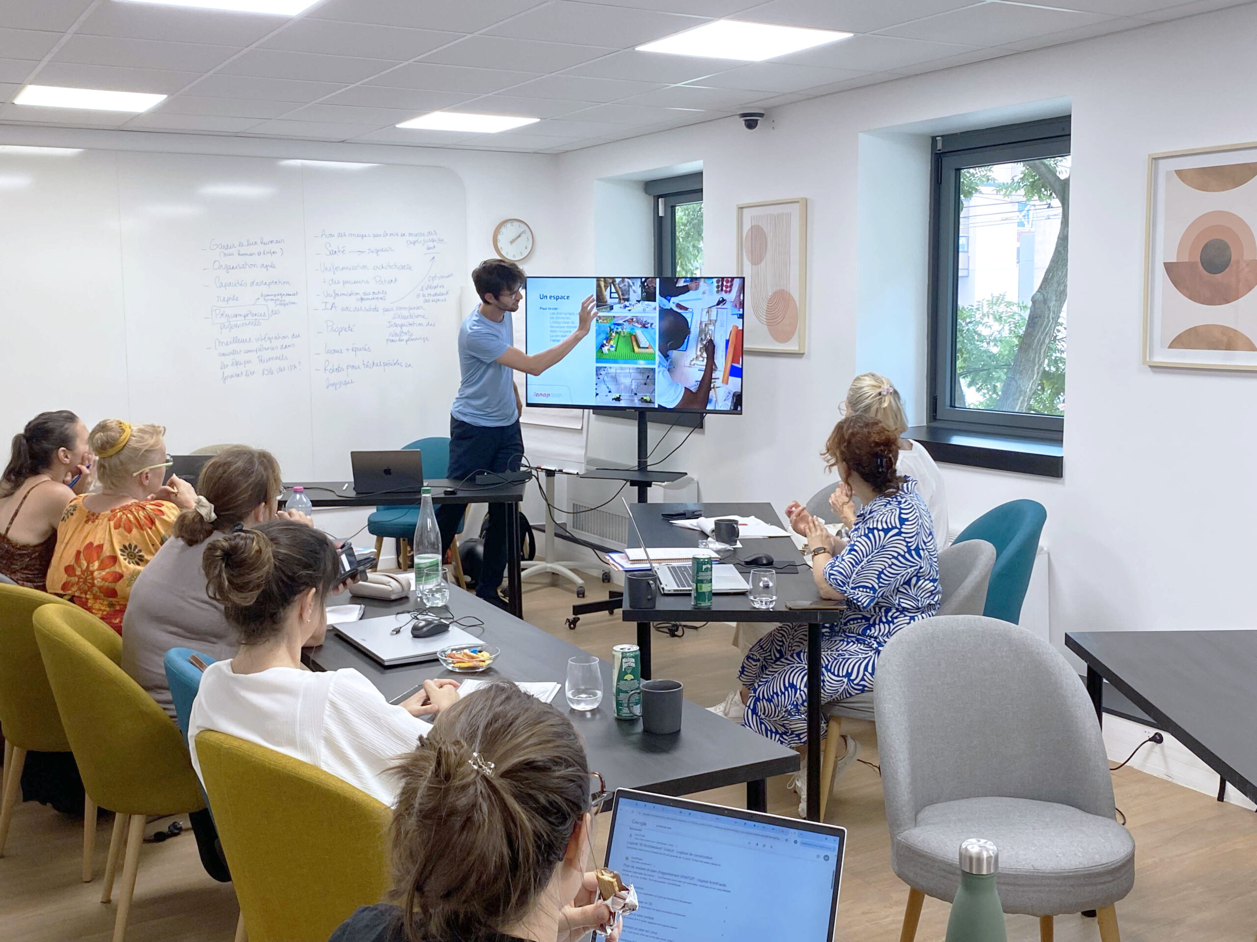 Dans le cadre des appuis terrain portés par l’ANAP, cette session d’accompagnement de 5 jours place l’expérimentation de terrain au cœur de la démarche. Les établissements participants s’appuient sur leurs propres projets opérationnels pour tester, en conditions réelles, la prise en compte de l’expérience patient. L’accompagnement est rythmé par des temps d’expérimentation menés dans les services (observations, enquêtes, tests de solutions), complétés par des journées collaboratives animées par Humaniteam à la demande de l’ANAP, visant à analyser les retours du terrain, structurer les enseignements et outiller les équipes pour la suite. Les projets abordés portent notamment sur des enjeux d’orientation et d’accueil : amélioration de l’accueil des patients en situation de handicap aux urgences, clarification des parcours par la signalétique, usages et compréhension des bornes d’accueil, ou encore conception d’outils d’éducation thérapeutique aidant les patients à s’orienter dans leur parcours de soins. Cette approche par l’expérimentation permet aux établissements de confronter directement les méthodes à leurs contraintes réelles, d’en mesurer l’utilité et d’envisager un déploiement progressif et adapté à leur contexte.
